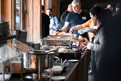 Genießen Sie das frische Buffet und tauschen Sie sich entspannt mit anderen Teilnehmerinnen und Teilnehmern aus.